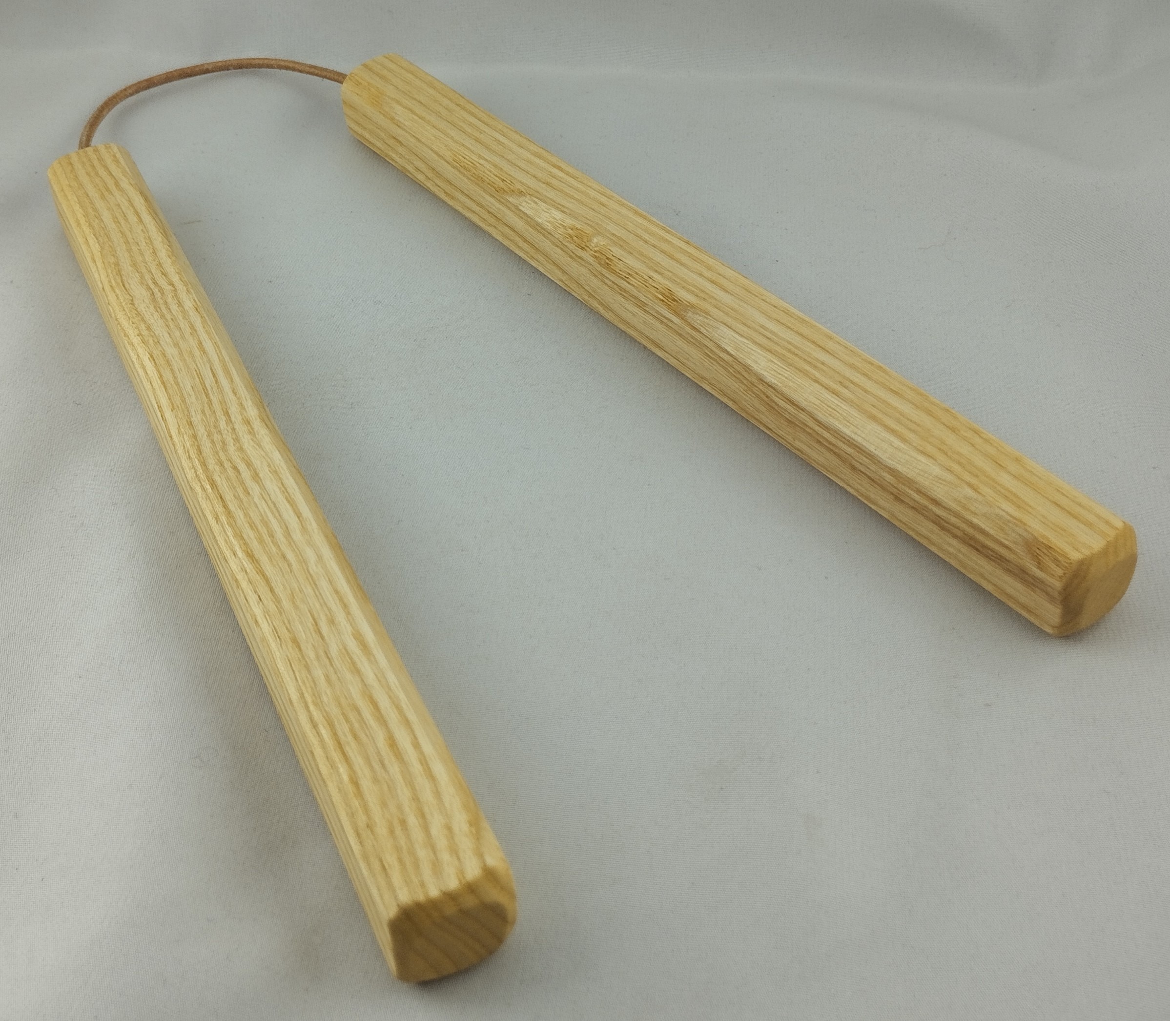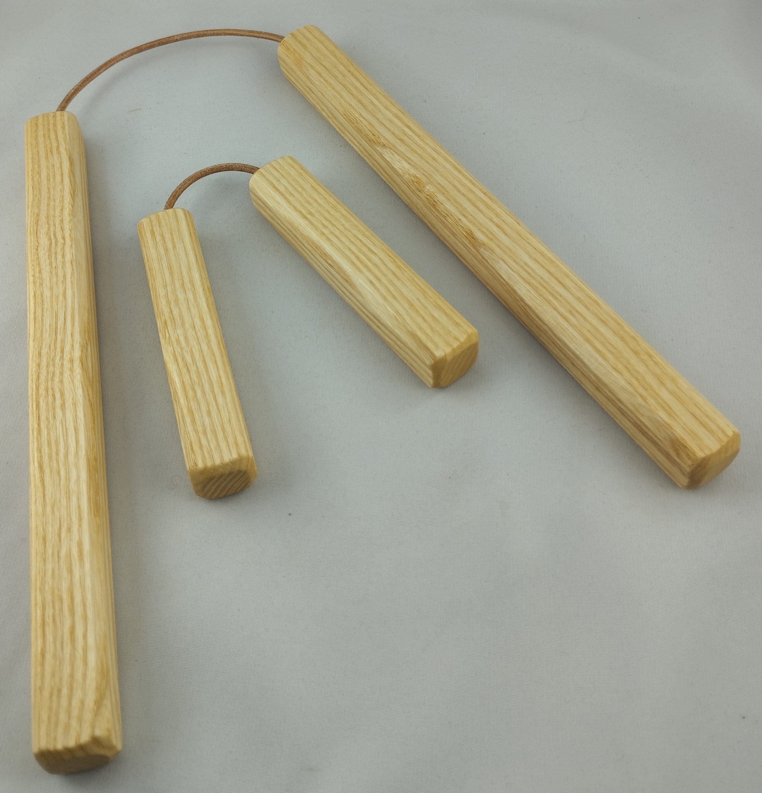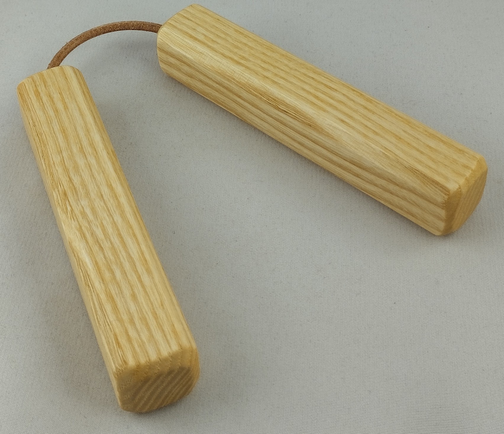 Topfuntersetzer bestehend aus 2 kurzen mit Lederschnur verbundenen Esche Stäben, biologisch geölt